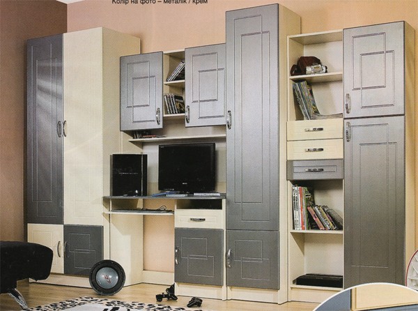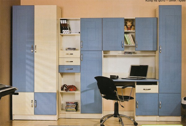 Цвет:корпус-крем, фасад - синий или металлик. высота.....2050 ширина....3000 глубина.....520 материал: МДФ